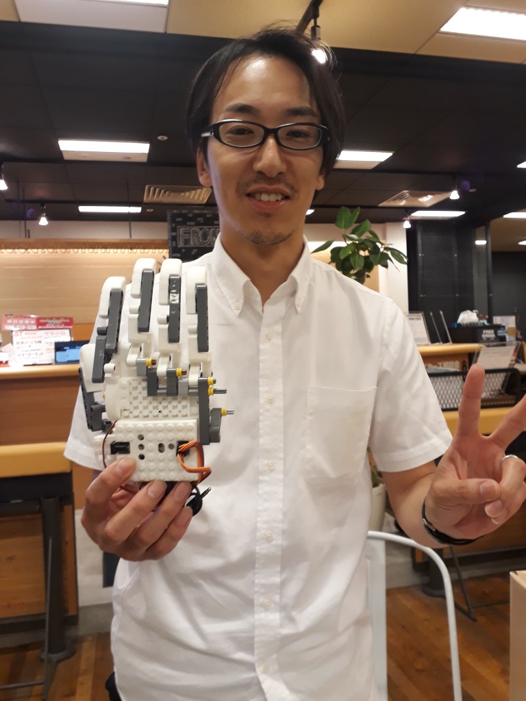 - Genta a pris la voie de l’indépendance. Il enseigne dans une université, conseille et possède son propre lab de 4m2 dans DMM Akiba, un coworking maker space. C’est là bas qu’il anime, chaque mercredi, la communauté des bénévoles makers de Mission Arm Japan. Si vous commandez une main Hackberry à assembler, il préparera le kit lui-même.